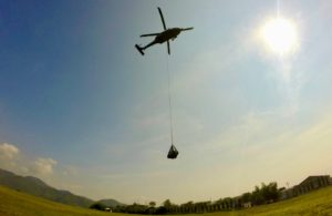2 days of ground lectures were followed with 8 days of flying training in PAF’s s70i Blackhawk helicopters, with a 500kg netted load and utilising both 25’ (7.6m) and 100’ (30m) Long Line Strops. From day 6 – 8, the training progressed to operating the 100’ load in and out of a jungle confined area clearing.
